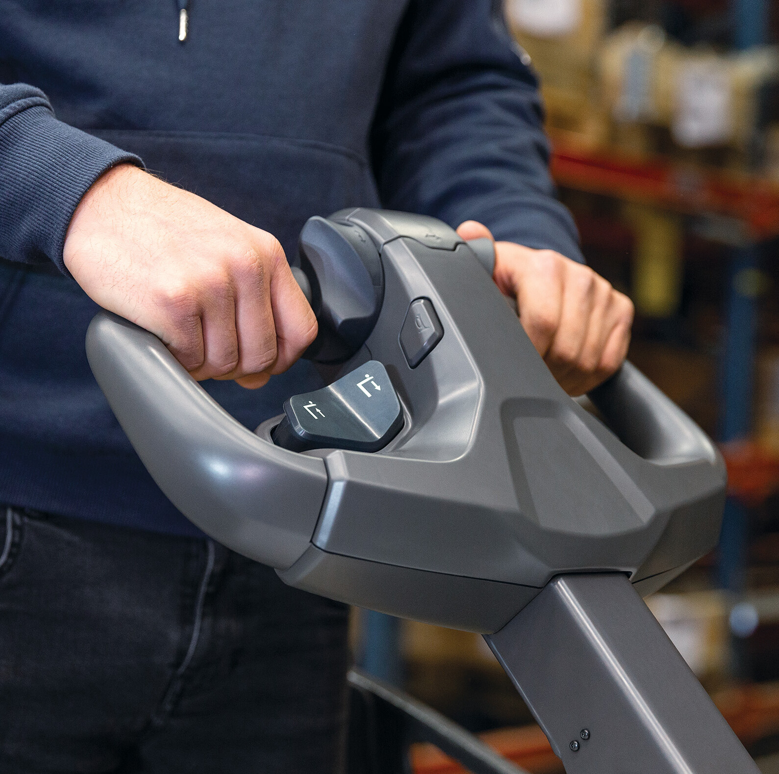► kompaktowe ręczne wózki podnośnikowe umożliwiają operatorowi chodzenie razem z pojazdami, niskie podwozie zapewnia operatorowi zawsze najlepszy widok na widły