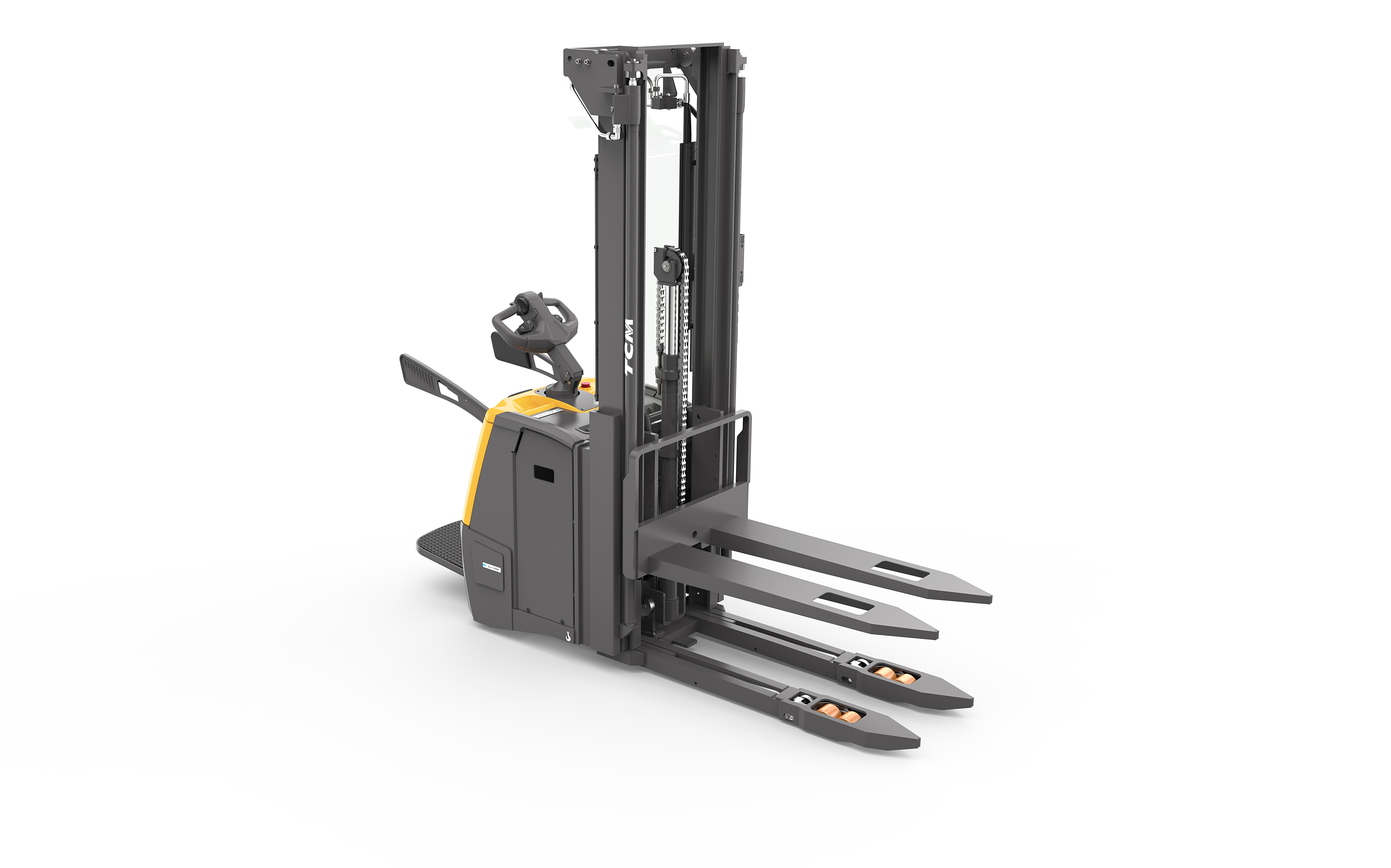 ► wąskie podwozie pozwala operatorowi podnosić i ustawiać palety w bardzo ciasnych przestrzeniach